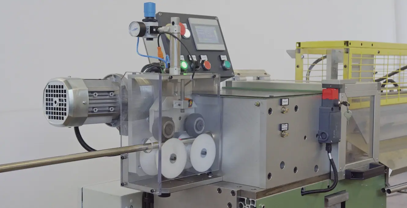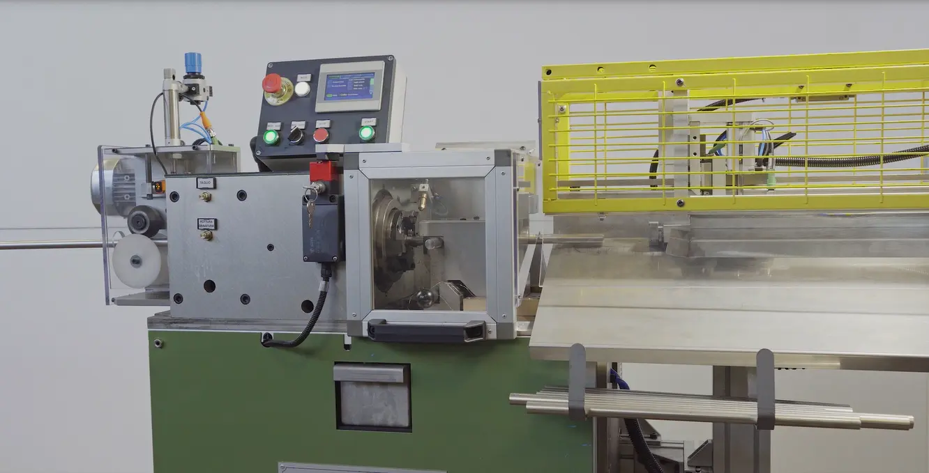 Guillotine cutting lines are engineered to produce tubes in customized lengths, with the internal diameter precisely calibrated at both ends. These systems are typically chosen for medium- to high-volume production, as they allow fast changeovers between cutting diameters. After cutting, a punching step removes the “heart-shaped” deformation created by the process. This punching can be carried out manually using a handheld tool or automatically through a transfer system positioned after the cutting station.