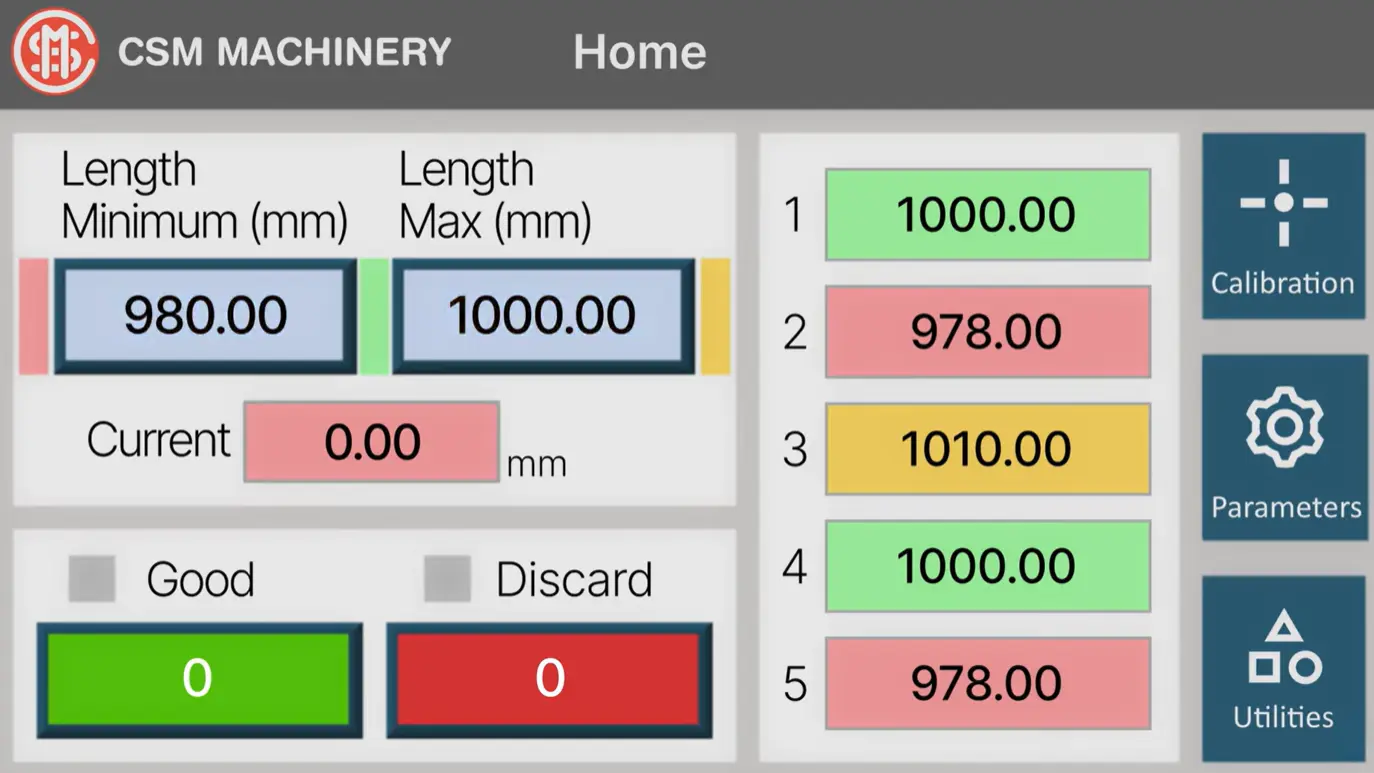 The PLC touch-screen offers an intuitive interface for easily setting and modifying the desired length range parameters.