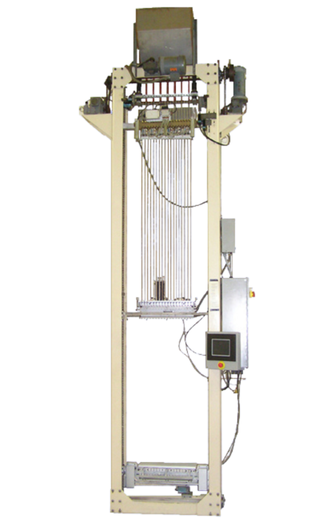 Motorized set up when changing the length of the tubes to be filled. Motorized adjustment of the top terminal pin protrusion from the tubes after being filled.