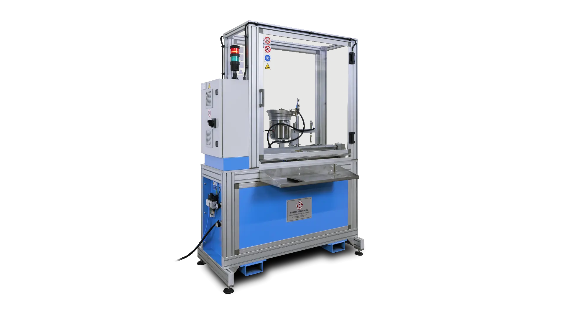 The automatic machine to assemble the plastic plugs on the bottom terminal pins is ideal when the welding between the spiral and the pin is performed manually.