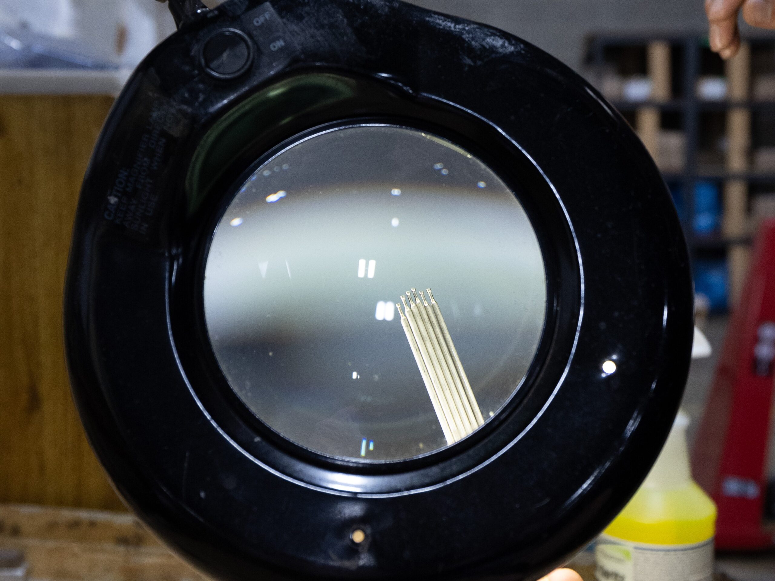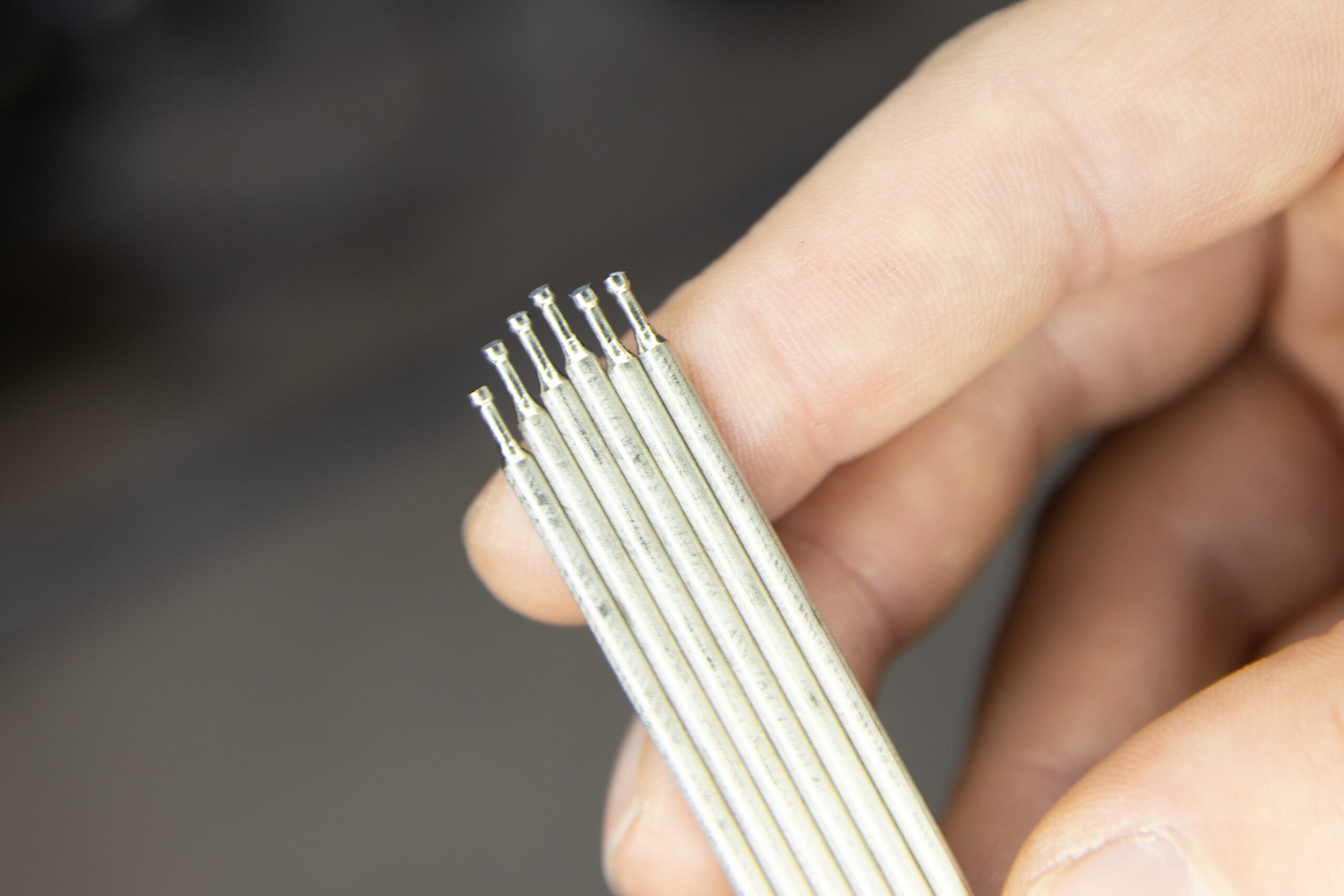 The cold-forming process allows us to use a softer wire with a lower tensile strength that makes welding the pin to coil assemblies much easier.