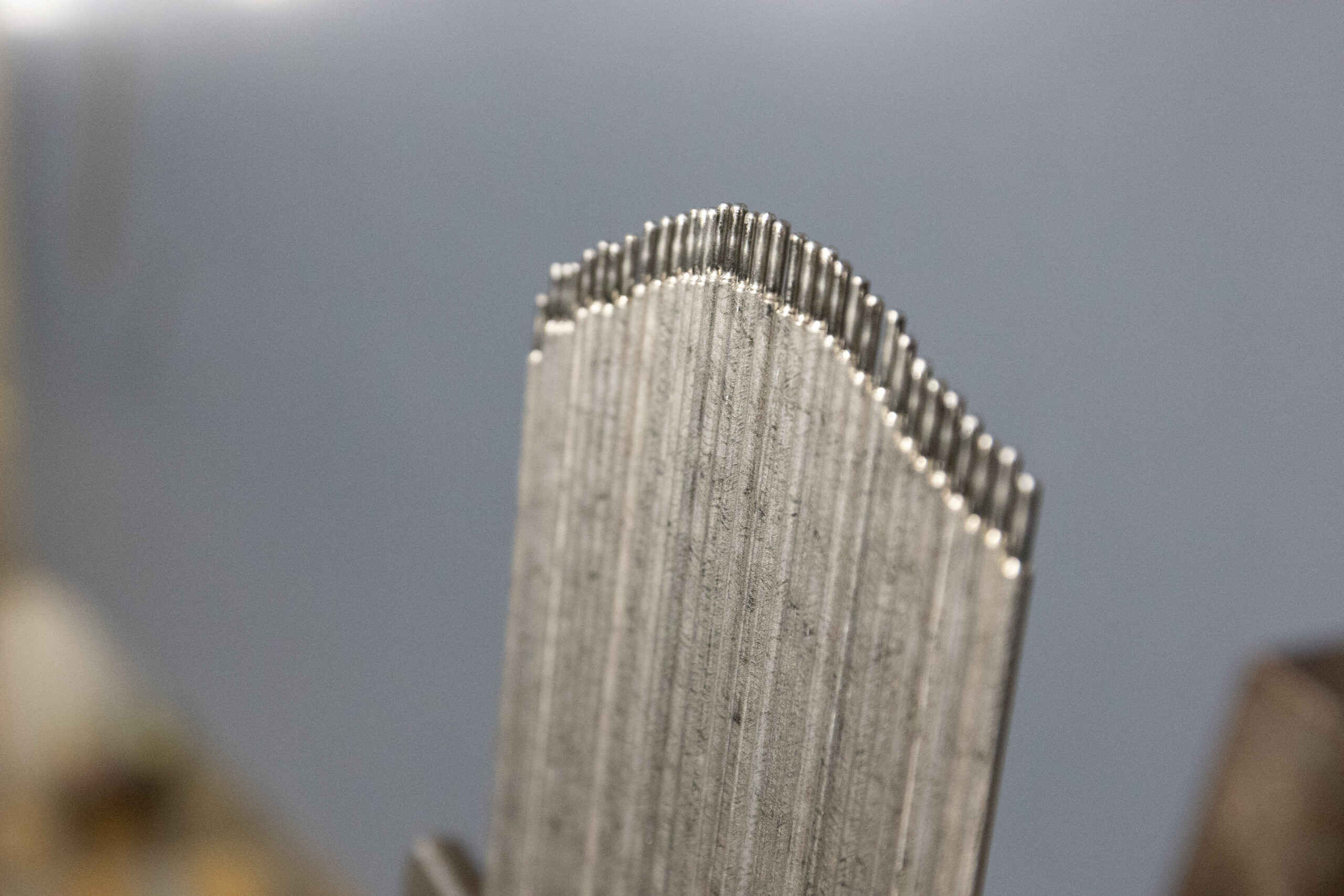 Unlike cutting or turning processes commonly used in terminal pin production, Oakley’s cold roll forming process does not remove material from the pin. As a result, the nickel coating on the wire is preserved and further embedded into the steel core during forming. This is especially important because nickel-plated wire is supplied with the nickel applied as the final stage of wire production, making it vulnerable to removal when machined using traditional methods.
