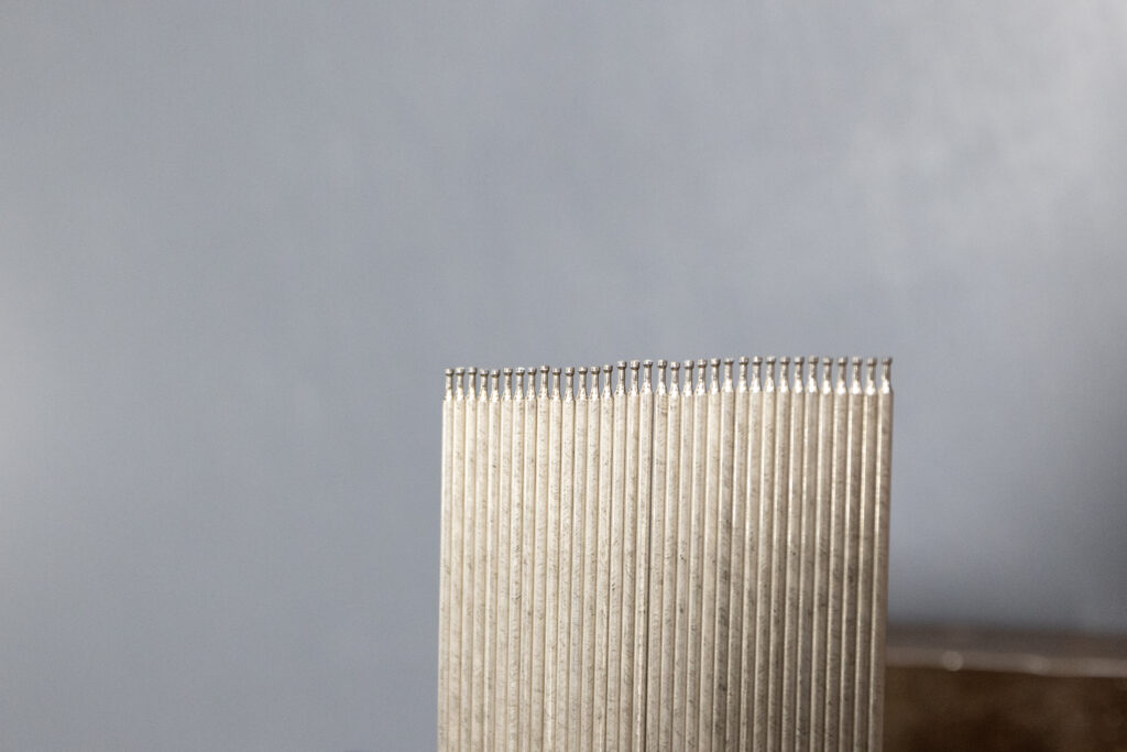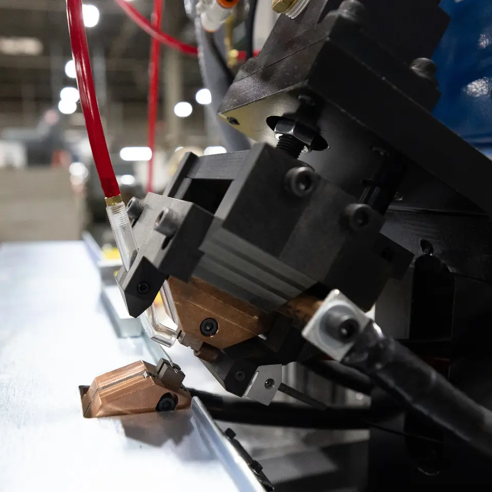 The cold-forming process allows us to use a softer wire with a lower tensile strength that makes welding the pin to coil assemblies much easier.