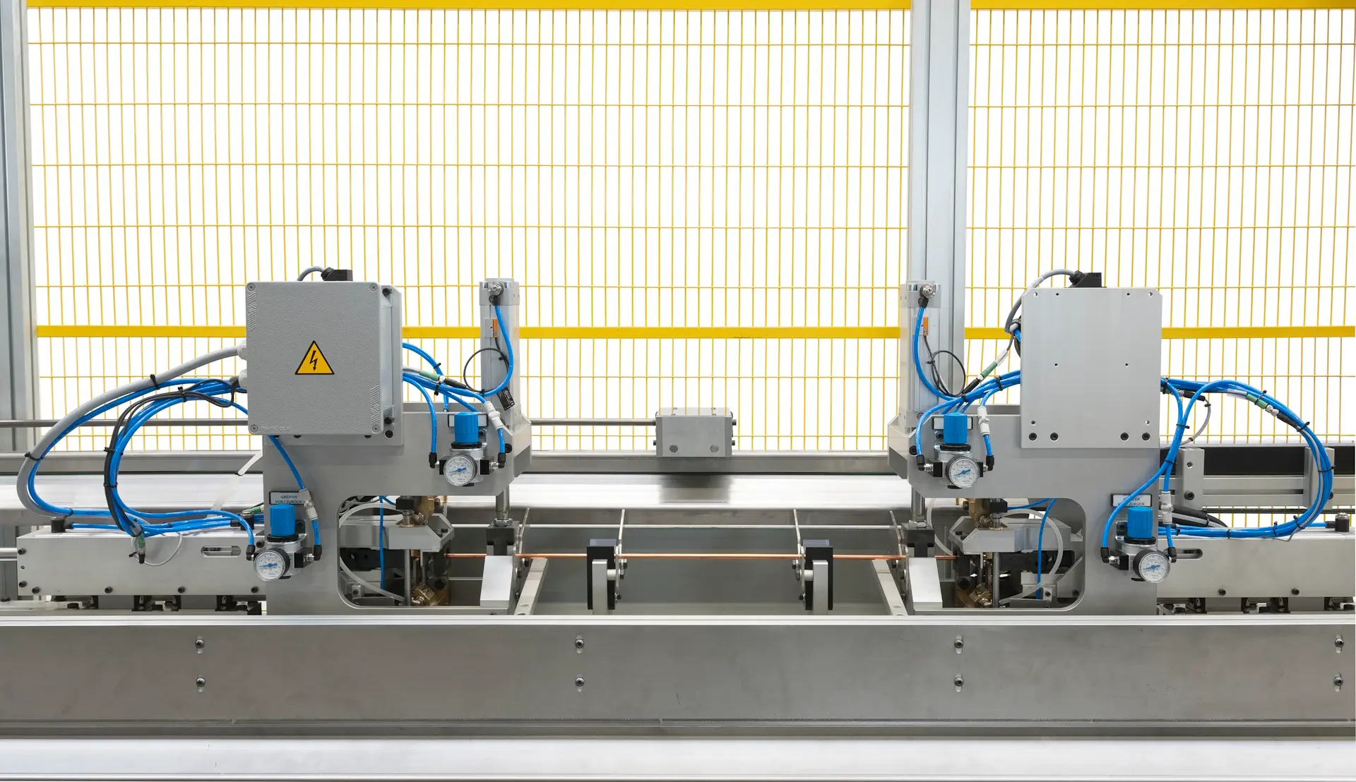 A standout feature is its fully automated plug removal function. As each heating element exits the rolling mill, it is transferred directly to the plug removal station. Here, the terminal area is pre-heated, and plugs are extracted using two precise pneumatic clamps. This automation eliminates manual handling, making the system ideal for medium-to-high production volumes.